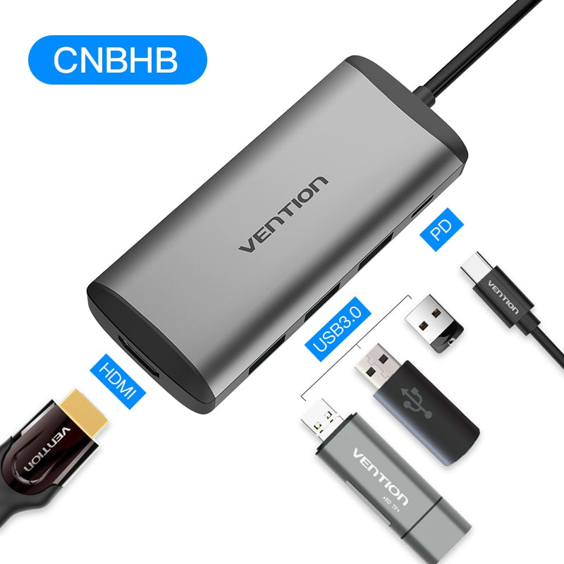 Vention Thunderbolt 3 Dock USB Hub Type C to HDMI USB3.0 RJ45 Adapter for MacBook Samsung Dex S10/S9/S8 Huawei USB-C Converter